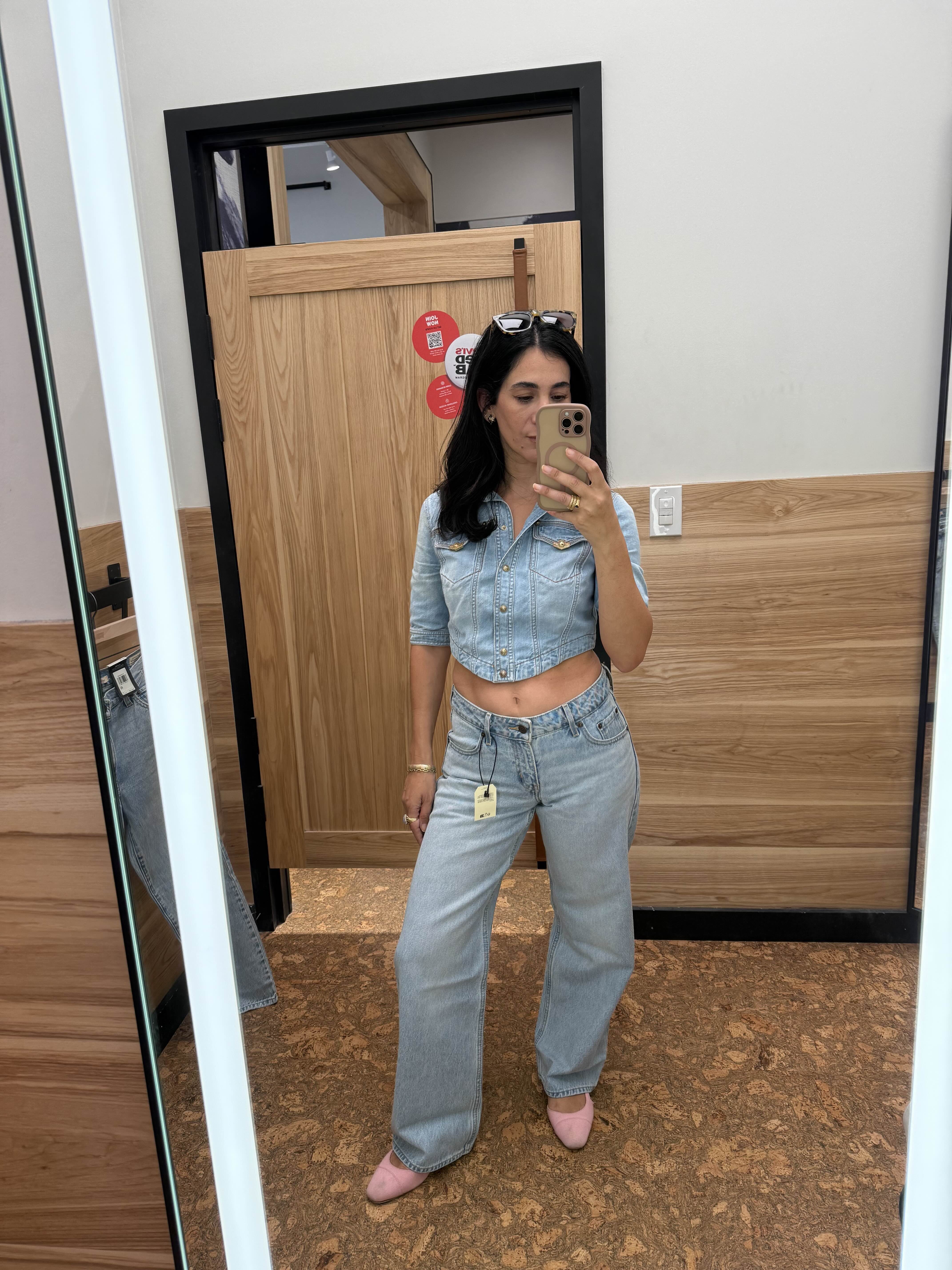 If you love oversized denim, this one’s for you. It’s low-slung and intentionally baggy, with a long, relaxed wide leg. Size down if you prefer something slightly less slouchy.
